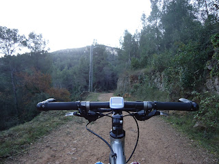Después de la salida de ayer hoy he sacado la bici de btt a pasear en una salida muy corta y de una hora de duración como toma de contacto con la montaña,sin hacer grandes desniveles y a un ritmo tranquilo pero con pulsaciones altas he realizado un recorrido con algunas dificultades tecnicas para ir cogiendo de nuevo la practica....